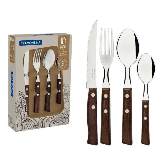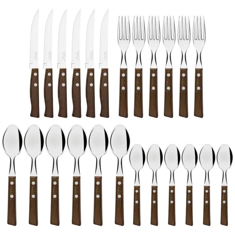 Conjunto Talheres 24 Peças Tradicional Cabo Madeira Tramontina