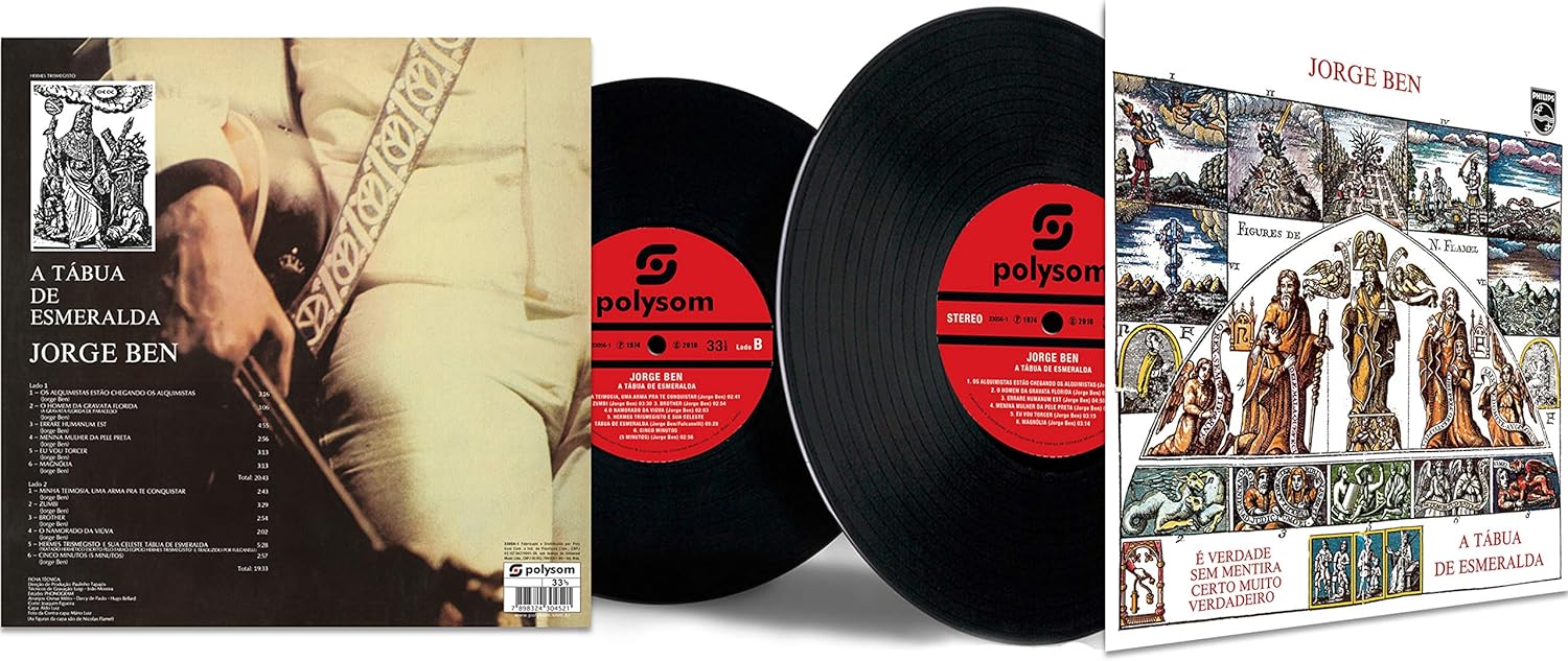 Considerado um dos melhores álbuns de jorge ben, o disco tem a alquimia como um dos temas principais e alguns arranjos com efeitos especiais completando o clima cósmico. Nessa época, o músico estudava filosofia e teologia, especialmente a obra de tomás de aquino, citada em várias faixas, são dessa fornada o clássico absoluto “os alquimistas estão chegando os alquimistas”, “hermes trimegisto e sua celeste tábua de esmeralda” e “errare humanum est”. Sempre pregando a felicidade e paz de espírito nas letras e na sua irresistível base, o artista manda brasa com seu canto chorado e suingue malandro em outras pérolas do álbum como “o homem da gravata florida”, “o namorado da viúva”, “eu vou torcer”, “menina mulher da pele preta”, “minha teimosia, uma arma pra te conquistar”, “magnólia”, “zumbi”, “brother” e “cinco minutos”. Lado a 1. Os alquimistas estão chegando os alquimistas 2. O homem da gravata florida 3. Errare humanum est 4. Menina mulher da pele preta 5. Eu vou torcer 6. Magnólia lado b 1. Minha teimosia, uma arma pra te conquistar 2. Zumbi 3. Brother 4. O namorado da viúva 5. Hermes trismegisto e sua celeste tábua de esmeralda 6. Cinco minutos (5 minutos)